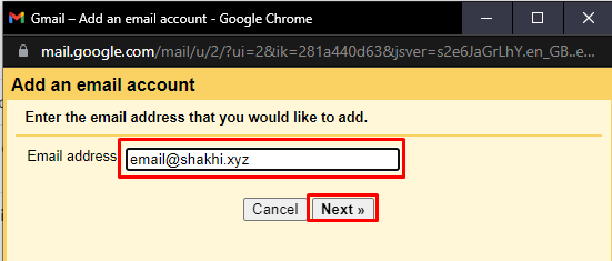 3. In the pop-up window enter your webmail and next connect Webmail with Gmail.