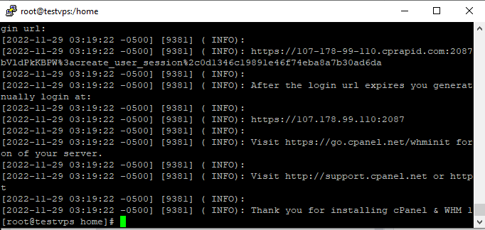 Now wait for your cPanel to install. cPanel will be installed automatically. Depending on your VPS server configuration it can take 30 minutes to every 1 or 2 hours.