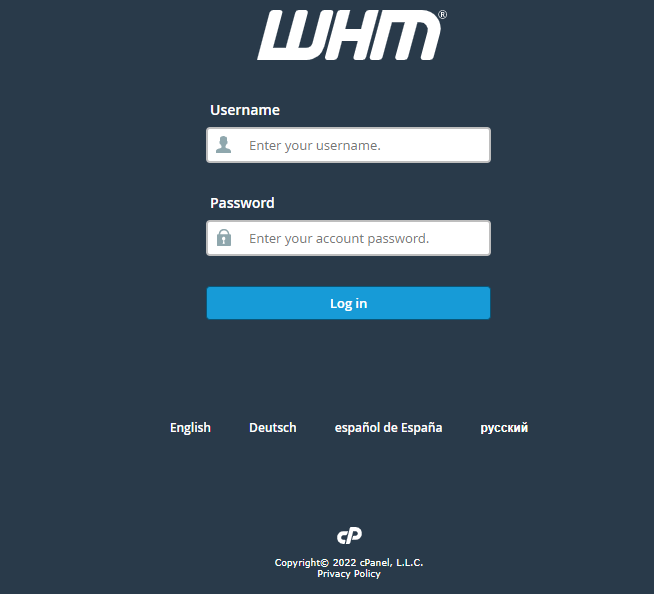 4. Now open your browser, enter your VPS IP, and add :2087 as the port. (e.g. 192.25.0.0:2087) It will take you to the login panel of your WHM.