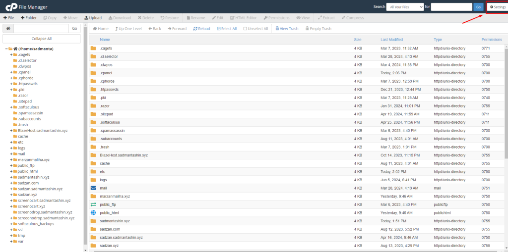 3. After clicking File Manager, you have to click on Settings which is at the top right side of the site as below seen –